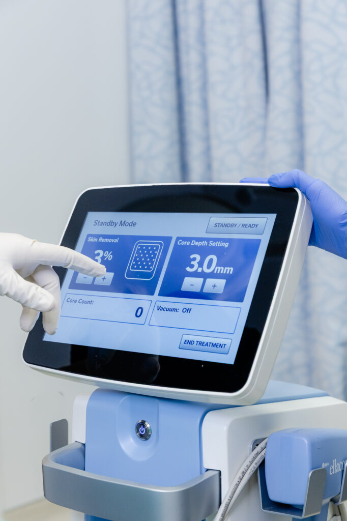 Ellacor goes beyond microneedling by using hollow needles to physically remove micro-cores of skin, achieving more significant tightening and wrinkle reduction without heat or thermal injury. It’s an ideal choice for patients seeking surgical-like results without surgery.